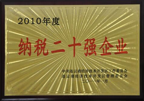 近日,在連云區(qū)政府舉行的開發(fā)區(qū)企業(yè)納稅大戶表彰會上,我公司被開發(fā)區(qū)管理委員會授予 “2010年度納稅20強企業(yè)”的光榮稱號并頒發(fā)獎金。2010年度,我公司在公司領導及全體員工的共同努力下,銷售額和稅收均創(chuàng)歷史最高。