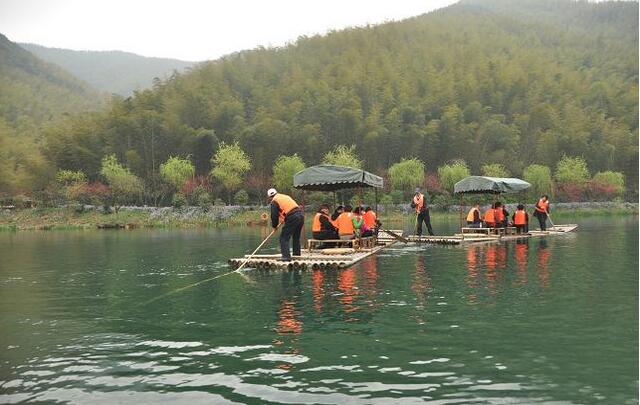 午餐吃過天目湖美味的砂鍋魚頭,下午我們到達的第二個景點是南山竹海。這是一個集資源利用、生態保護、旅游觀光于一體的世外桃源,素有“天堂南山、夢幻竹海”的美譽。一進景區,頓覺脫離都市的暄鬧,猶如走進一個天然氧吧。景區內青山秀美、竹海清幽。在湖水清洌的靜湖之上,一排排竹筏飄蕩在綢緞般的水面上,一行人終是沒能禁得住誘惑,紛紛跳上竹筏,揮舞櫓漿,悠賞水波蕩漾,水竹相依的美景。湖岸邊的碧綠竹海,散發著清涼靜雅的氣息,正所謂“舟行碧波上,人在畫中游”。 呼吸著清新的空氣,一行人繼續拾級而上,行至壽星廣場,中央佇立著的老壽星,慈眉善目,引人注目。雖然山坡陡峭,卻阻止不了大家意欲登高,極目遠眺、縱覽群山小的急迫心情。心急的早已行至山頂,再坐索道纜車下行,連綿不絕的竹海,層層疊疊,像一幅巨型潑墨山水畫,秀美壯闊的景色,早已滌蕩去了身心的疲憊。