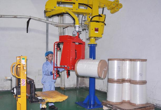 該機(jī)械手經(jīng)過(guò)五個(gè)月的使用,效果明顯。該設(shè)備可以使數(shù)百公斤重的卷材,象失重一般處于漂浮狀態(tài),操作者輕松地將卷材放平和豎起。不僅可以最大限度地避免卷材碰傷、降低生產(chǎn)成本,同時(shí)也避免了操作者的背、腰的損傷和疲勞,提高了生產(chǎn)效率和安全性。