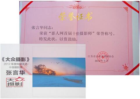 近日,我公司市場(chǎng)推廣部張言華榮獲江蘇省企業(yè)攝影家協(xié)會(huì)頒發(fā)的“影人網(wǎng)”首屆十佳攝影師稱號(hào)。張言華利用業(yè)余時(shí)間從事攝影創(chuàng)作,短短時(shí)間內(nèi)取得了令人矚目的成績(jī),其現(xiàn)為中國(guó)攝影家協(xié)會(huì)會(huì)員,中國(guó)藝術(shù)攝影學(xué)會(huì)會(huì)員,大眾攝影2012年網(wǎng)絡(luò)十佳攝影師,近年來有近30部作品在《大眾攝影》《中國(guó)攝影雜志》《中國(guó)攝影報(bào)》等國(guó)家級(jí)期刊獲獎(jiǎng)發(fā)表,代表作有《北國(guó)風(fēng)光》、《都不理我》、《秋》、《春花似夢(mèng)》、《歲月》、《雨季》、《金色的樂章》、《冰城》、《陽(yáng)光女孩》、《曾經(jīng)滄海》、《廣場(chǎng)魅影》、《早市》、《夢(mèng)里雪鄉(xiāng)》、《雨中漫步》、《冬眠》、《待》、《老道外》、《市場(chǎng)》、《夢(mèng)幻荷塘》、《海邊》、《霧之韻》、《雪域晨光》、《松花江邊》、《海濱浪漫曲》等。其中《炫冰之魅》系列作品刊登在中國(guó)攝影報(bào)2014年1月14日佳作欄目。