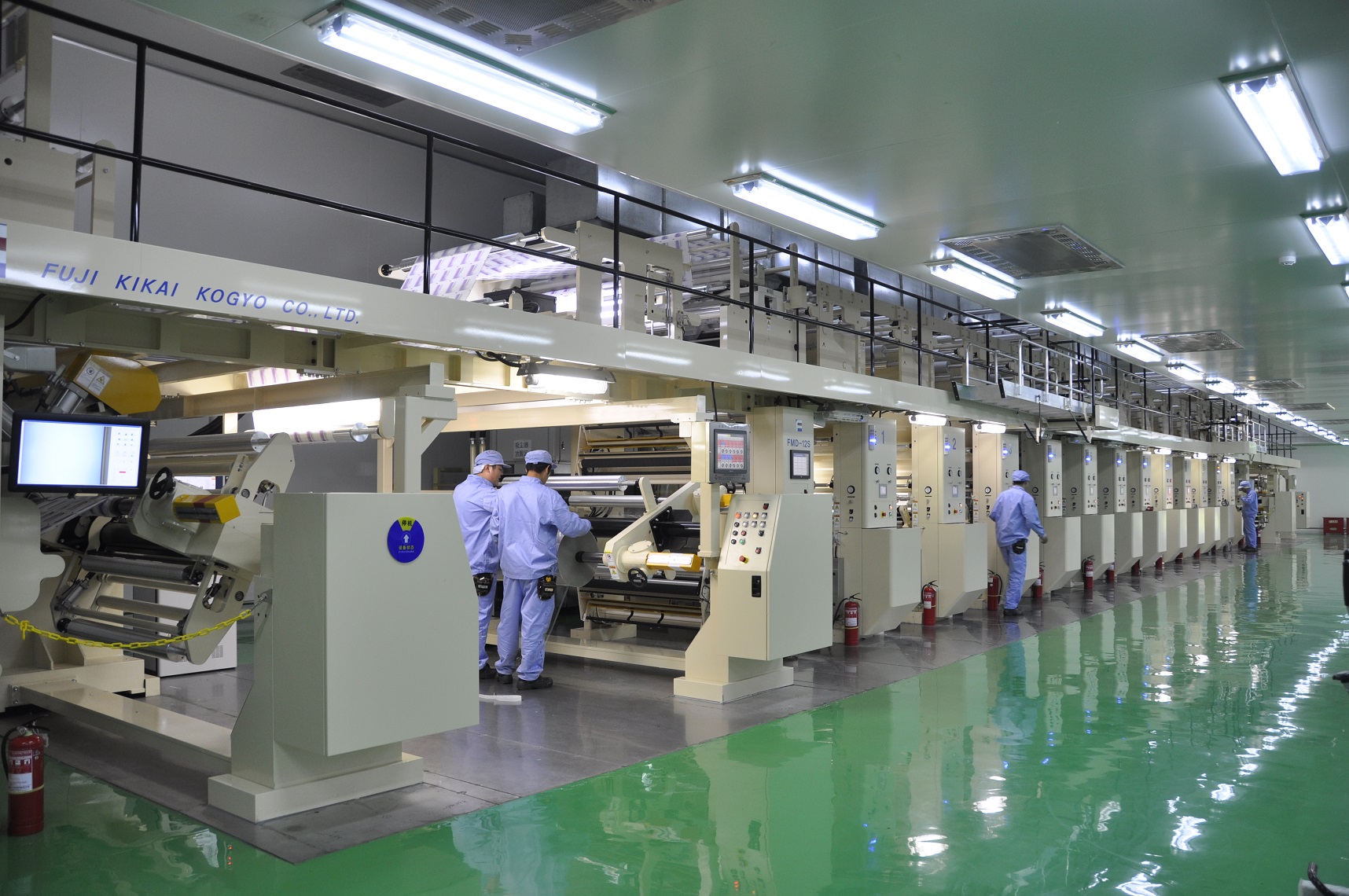 日前,公司從日本引進(jìn)的12色印刷機(jī)已安裝完畢并通過(guò)驗(yàn)收。該印刷機(jī)既可以生產(chǎn)PET、BOPP薄膜,亦可以生產(chǎn)紙張印刷產(chǎn)品。其自動(dòng)對(duì)版、電子軸驅(qū)動(dòng)、干燥箱噴嘴模式、新型節(jié)能熱源等,均采用當(dāng)今世界最先進(jìn)的技術(shù),最高生產(chǎn)速度300 m/min,節(jié)能率達(dá)70%。