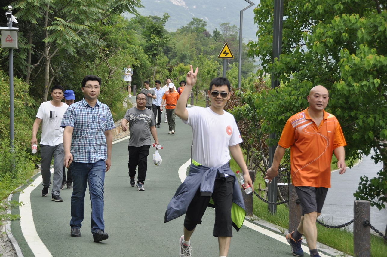 健步走活動(dòng)以宿城景區(qū)門口為起點(diǎn),繞水庫健身道環(huán)行兩周,全程約5公里。上午9點(diǎn),在徐根華總經(jīng)理簡短的開幕致辭中,比賽拉開了帷幕,隨著裁判的一聲哨響,各代表隊(duì)依次出發(fā)。行走在綠樹蔥郁、蜿蜒整潔的健身步道上,呼吸著新鮮空氣,欣賞著山林美景,員工們個(gè)個(gè)精神抖擻,意氣風(fēng)發(fā),邁著矯健的步伐向著終點(diǎn)目標(biāo)進(jìn)發(fā)。