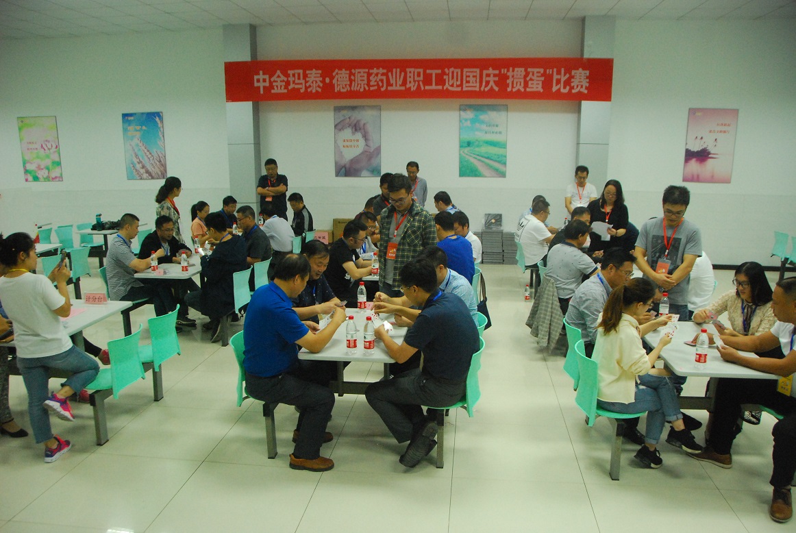 為慶祝中華人民共和國成立69周年,9月29日,中金瑪泰·德源藥業職工迎國慶“摜蛋”比賽在德源藥業舉行。本次活動雙方各選派出8組選手參加了比賽。