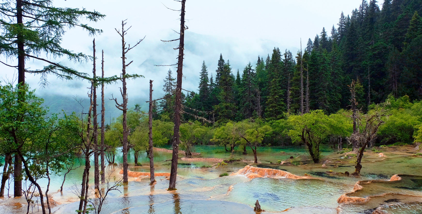 第二站,我們來到了位于四川省阿壩藏族羌族自治州松潘縣境內的黃龍風景區,主景區黃龍溝,似中國人心目中“龍”的形象,因而歷來被喻為中華象征。黃龍溝景區以彩池、雪山、峽谷、森林“四絕”著稱于世,數百個大大小小的彩池鋪陳在我們眼前,不同色彩的群池,層疊而上,錯落有致,恰似一幅人間瑤池的立體油畫,讓人嘆為觀止。